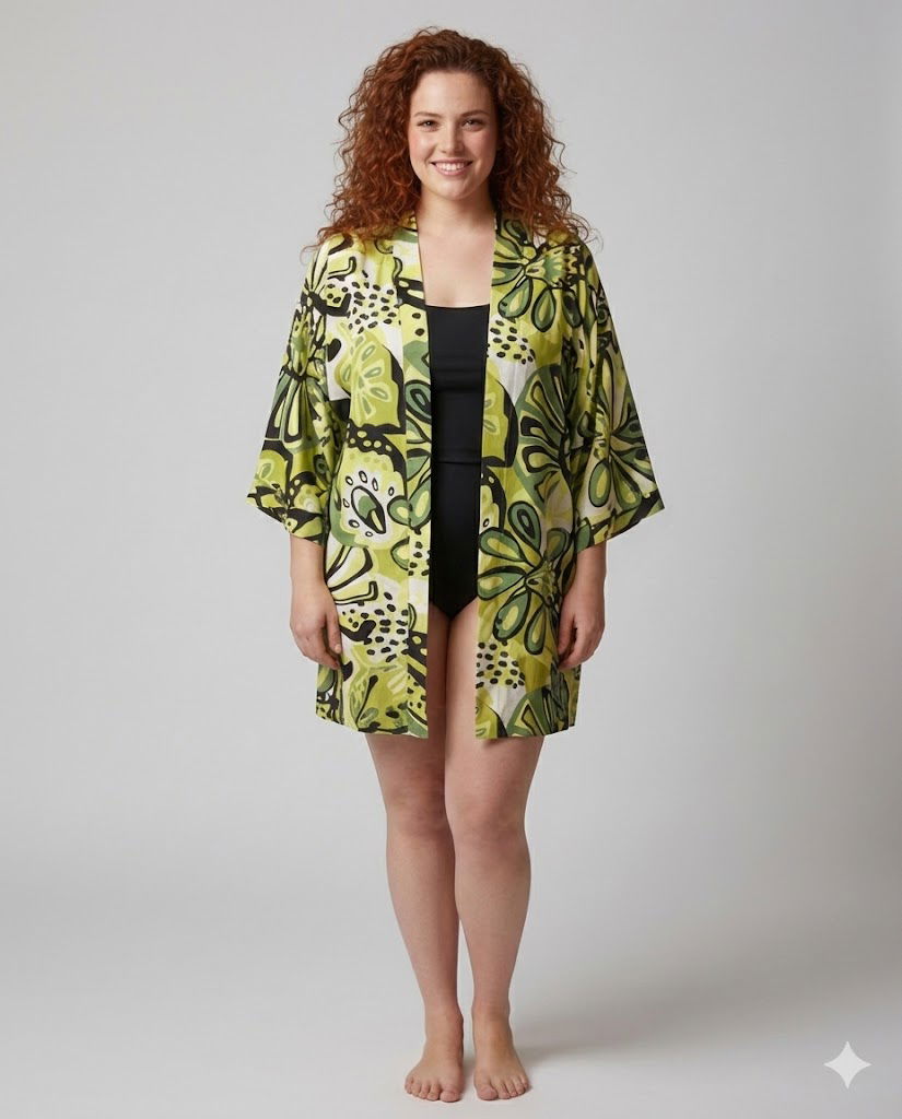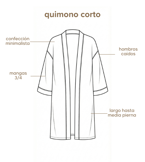 Su diseño es abierto y holgado, sin cinto ni bolsillos, para que sea lo más liviano y fluido posible. El largo es ideal, a la mitad del muslo, perfecto para usar sobre el pijama, bikini, incluso como complemento de cualquier look veraniego. Confeccionado en suave fibrana.