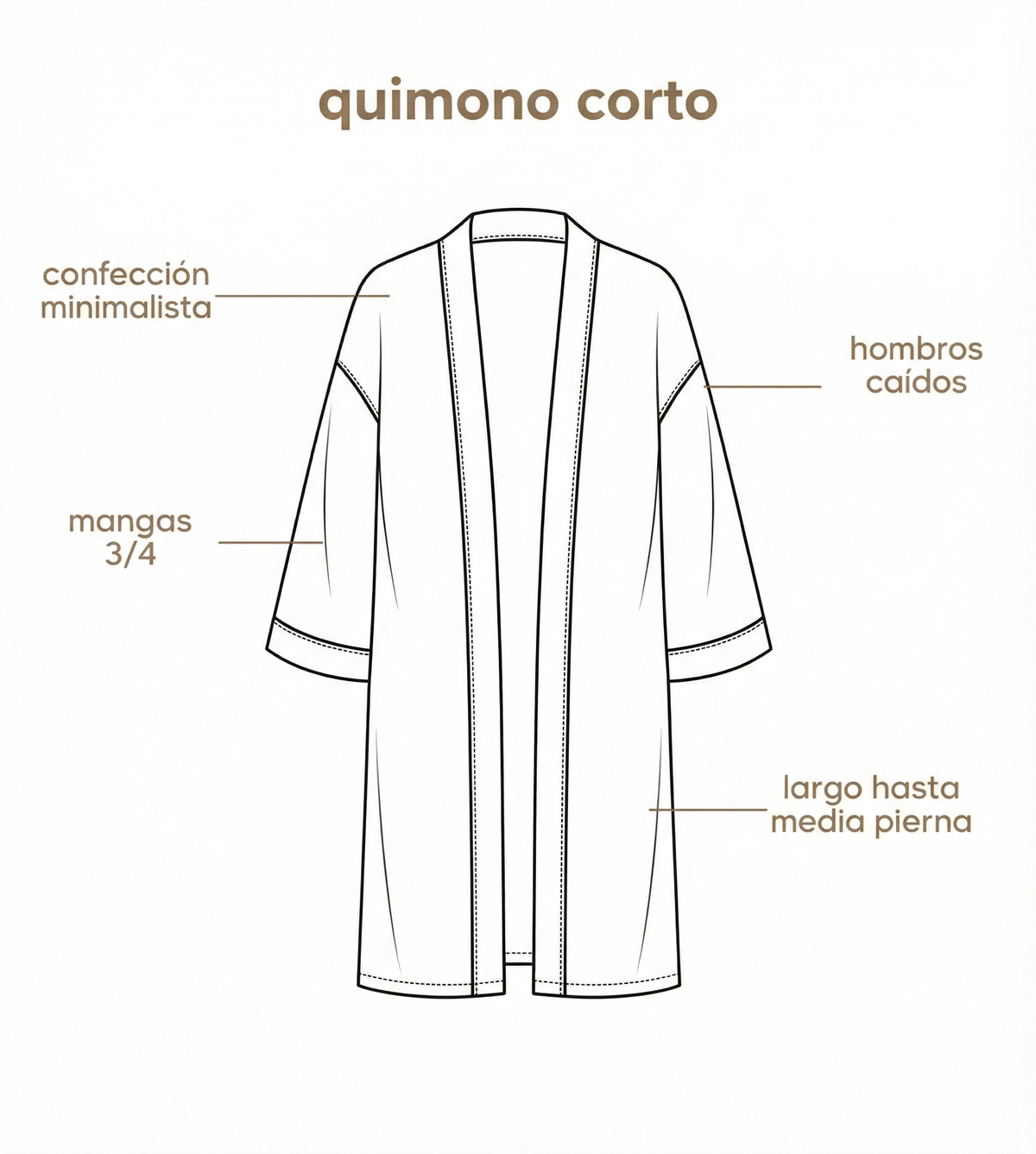 Su diseño es abierto y holgado, sin cinto ni bolsillos, para que sea lo más liviano y fluido posible. El largo es ideal, a la mitad del muslo, perfecto para usar sobre el pijama, bikini, incluso como complemento de cualquier look veraniego. Confeccionado en poplín elastizado.